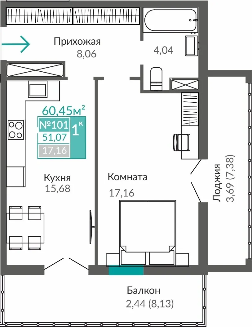 Застройщик создал квартиры, в которых хочется проводить время, принимать гостей и радоваться каждому дню. Ни одного лишнего метра — только эргономика и функциональность.