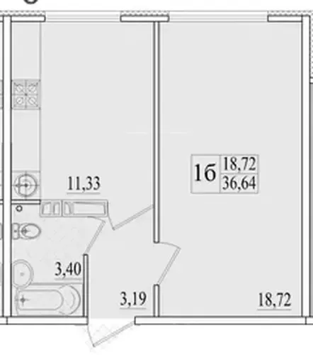 Квартира 1-комн. 36.64 кв. м