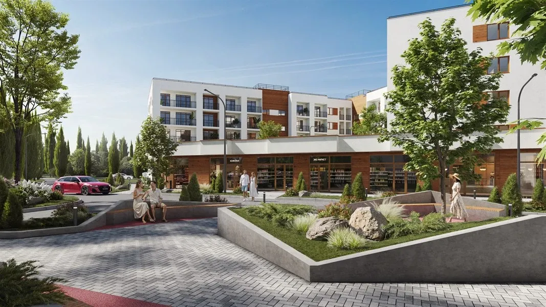 На территории также разместятся коммерческие помещения, кафе и магазины, создавая всё необходимое для комфортной жизни в шаговой доступности.
