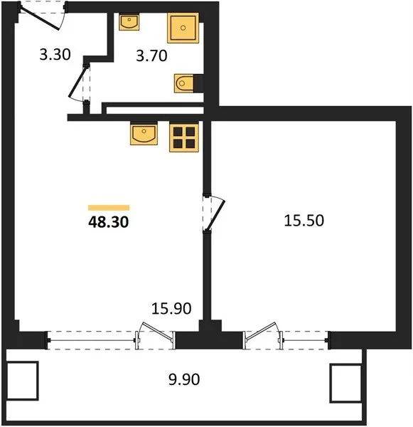 В комплексе представлены апартаменты площадью от 22 до 52 квадратных метров с балконами. Увеличенная высота потолков создаёт ощущение простора и свободы: