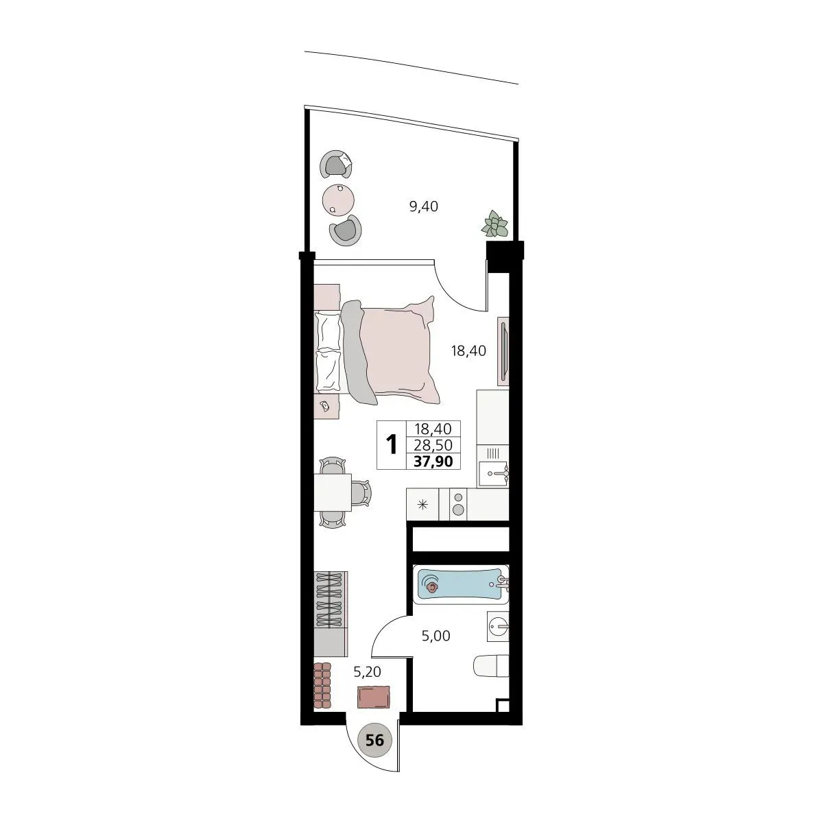 Апартаменты 1-комн. 0 кв. м 3/8 эт.