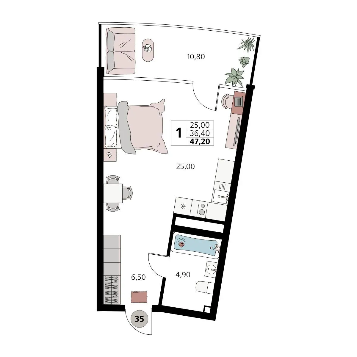 Апартаменты 1-комн. 5/7 эт.