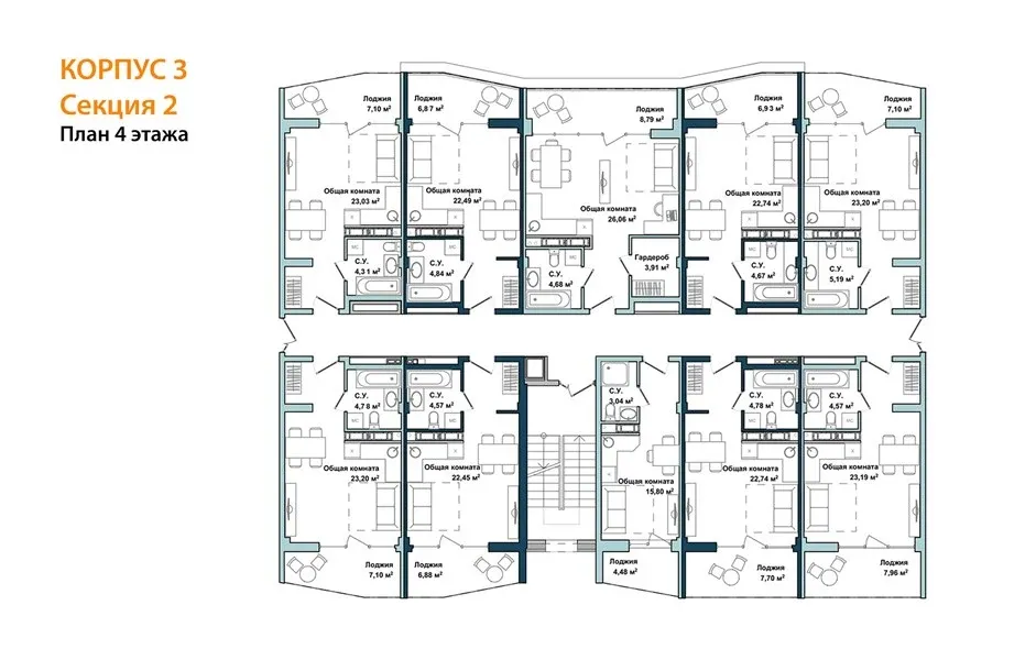 - 465 вариантов планировок: от уютных студий 33 м² до просторных многокомнатных апартаментов 76 м²
