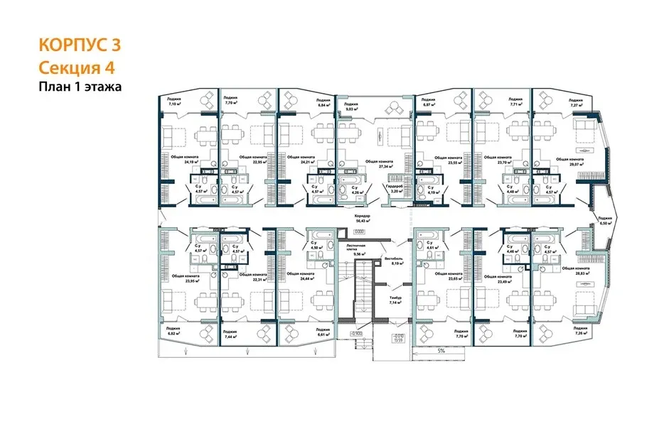 - 465 вариантов планировок: от уютных студий 33 м² до просторных многокомнатных апартаментов 76 м²