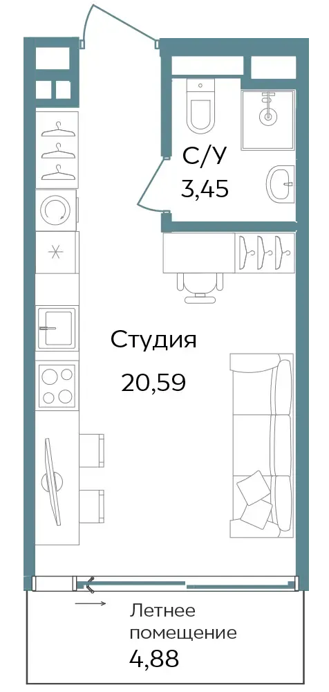 Студии и апартаменты с 1–3 комнатами в формате европланировок.