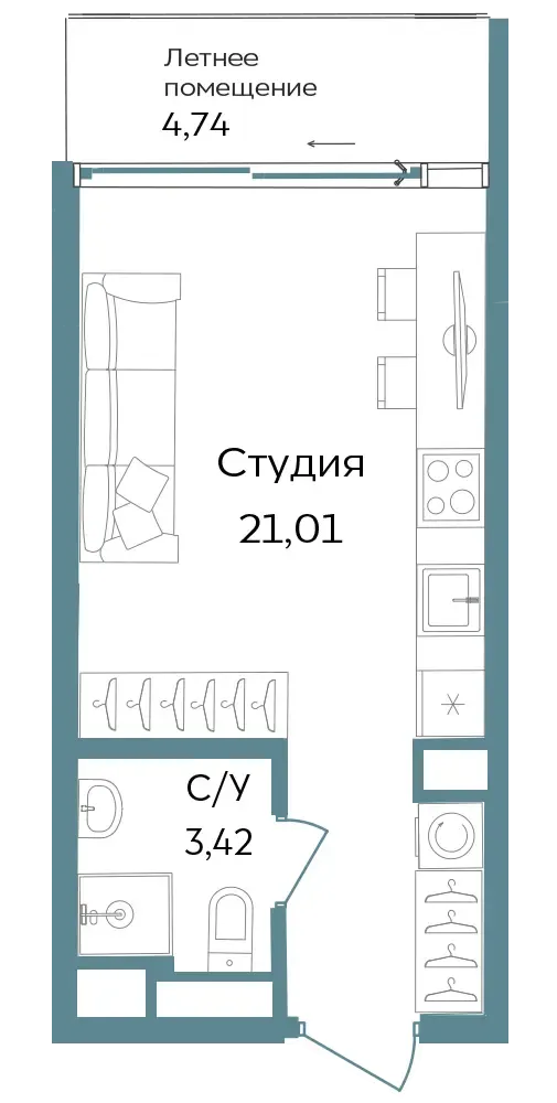 Студии и апартаменты с 1–3 комнатами в формате европланировок.
