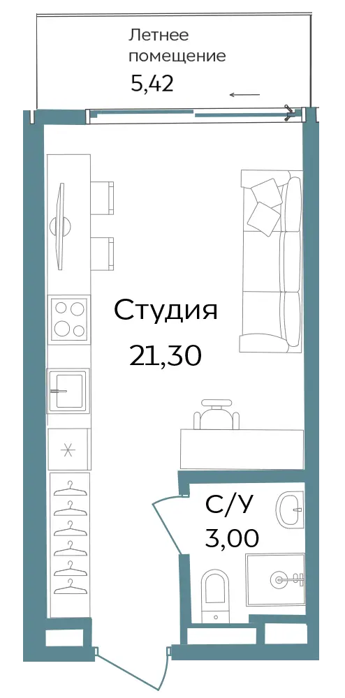 Студии и апартаменты с 1–3 комнатами в формате европланировок.