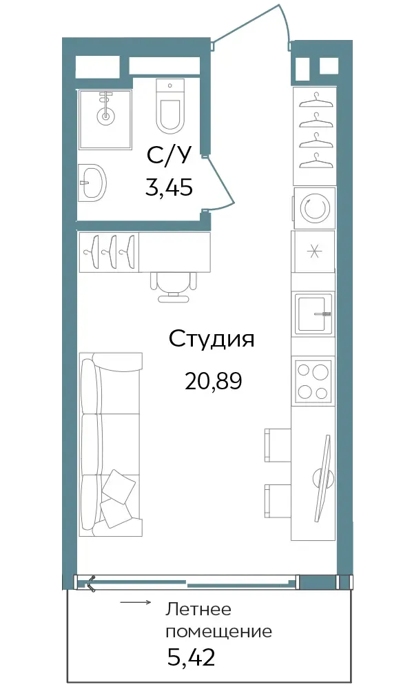 Студии и апартаменты с 1–3 комнатами в формате европланировок.