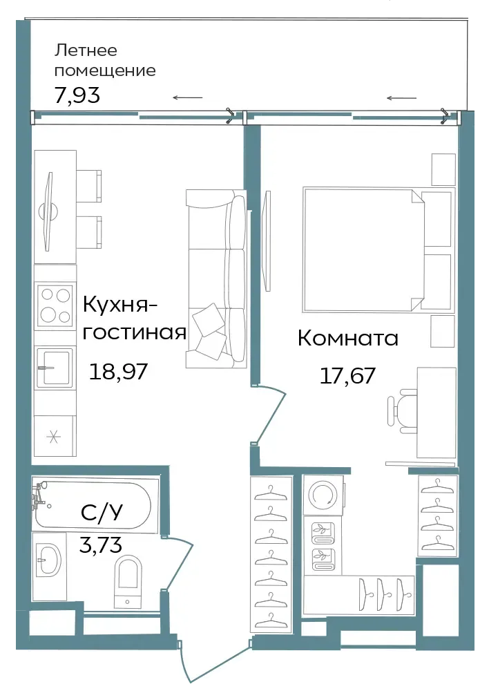 Студии и апартаменты с 1–3 комнатами в формате европланировок.