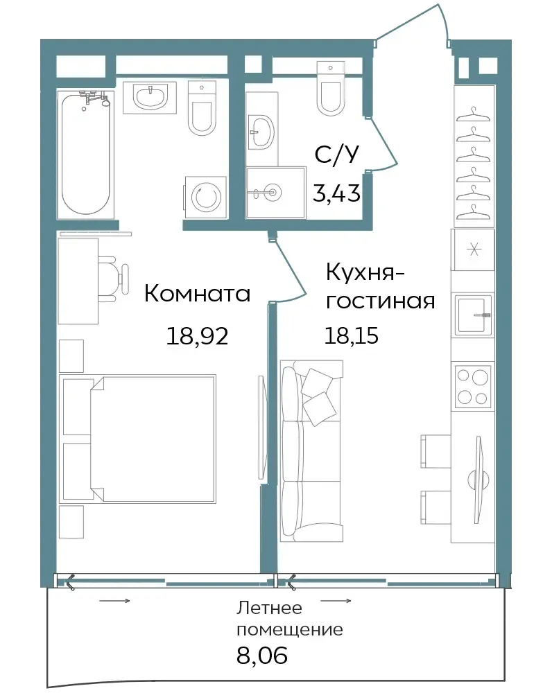Студии и апартаменты с 1–3 комнатами в формате европланировок.