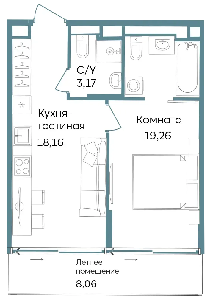 Студии и апартаменты с 1–3 комнатами в формате европланировок.
