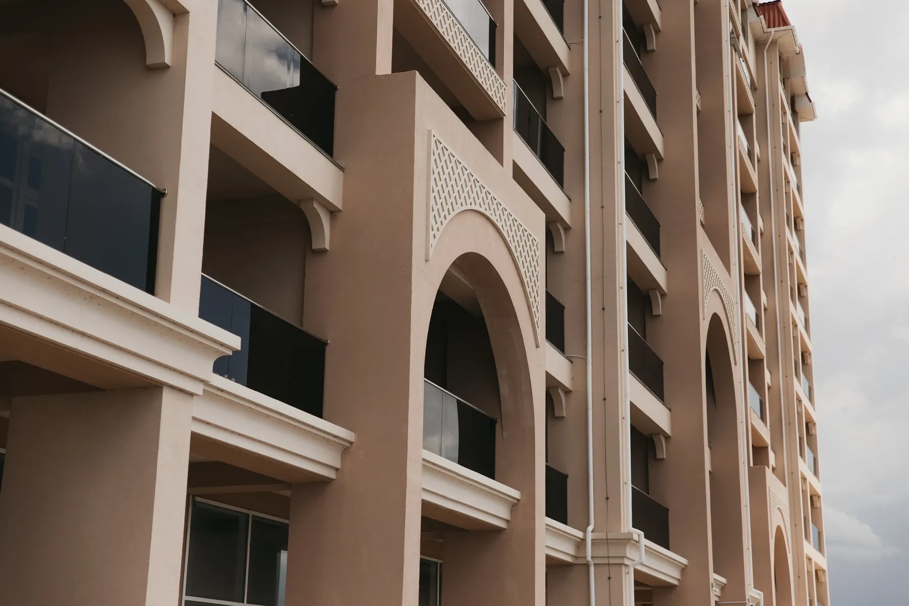 - Продуманная архитектура: светлые фасады, отражающие зной, и натуральный камень в отделке.