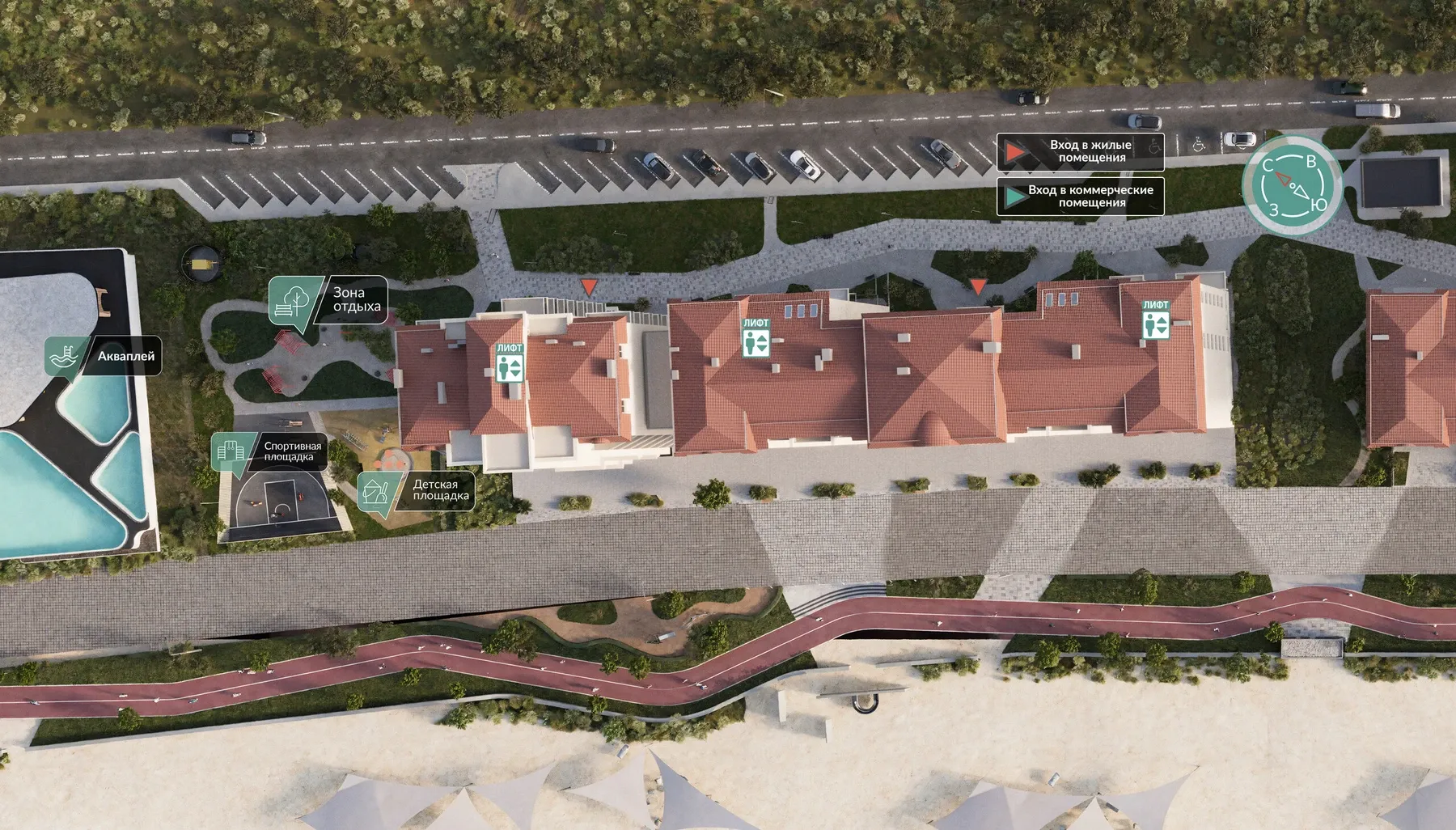 - Готовая инфраструктура. Акваплей, паркинг, кафе, спорт — всё работает на ваш комфорт и доход.