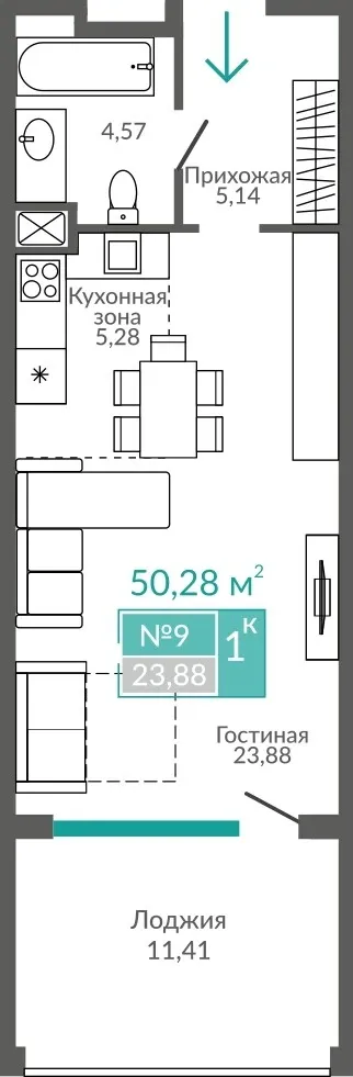 Площадь кухни, м²