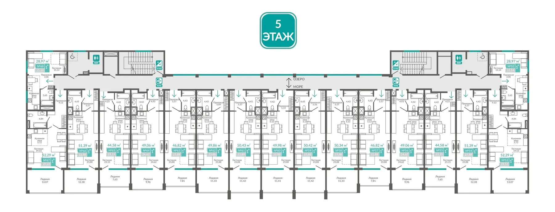 - Панорамное остекление и просторные балконы — солнечный свет и вид на бескрайнюю синеву.