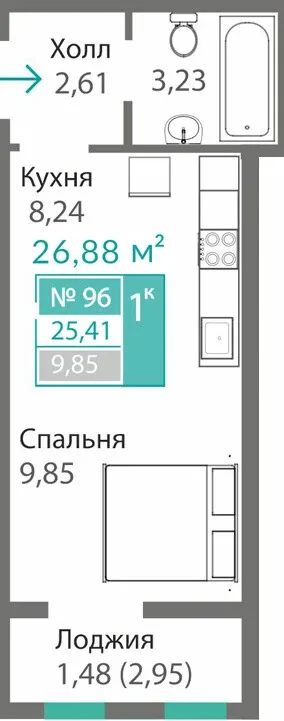 - Студии и 1-комнатные — 25,4–38 м², идеальный старт.