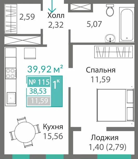 - Студии и 1-комнатные — 25,4–38 м², идеальный старт.