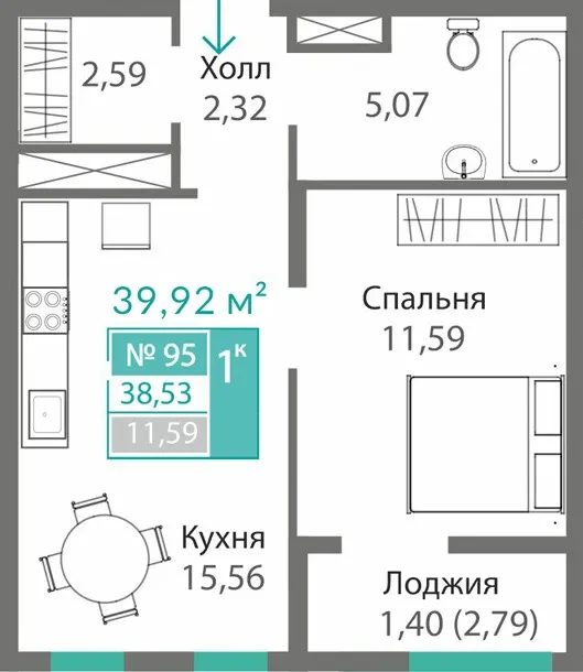- Студии и 1-комнатные — 25,4–38 м², идеальный старт.