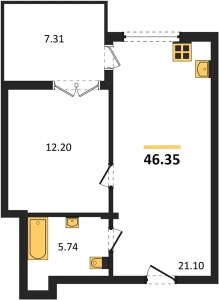 Квартира: 1 к 46,35 кв.м., 9 этаж в комплексе Бухта Счастливая, 1 очередь, корп.1, сдача: 1кв. , этажей: 12, адрес Черноморское пгт., Евпаторийская ул., , Застройщик: Крымский строитель.