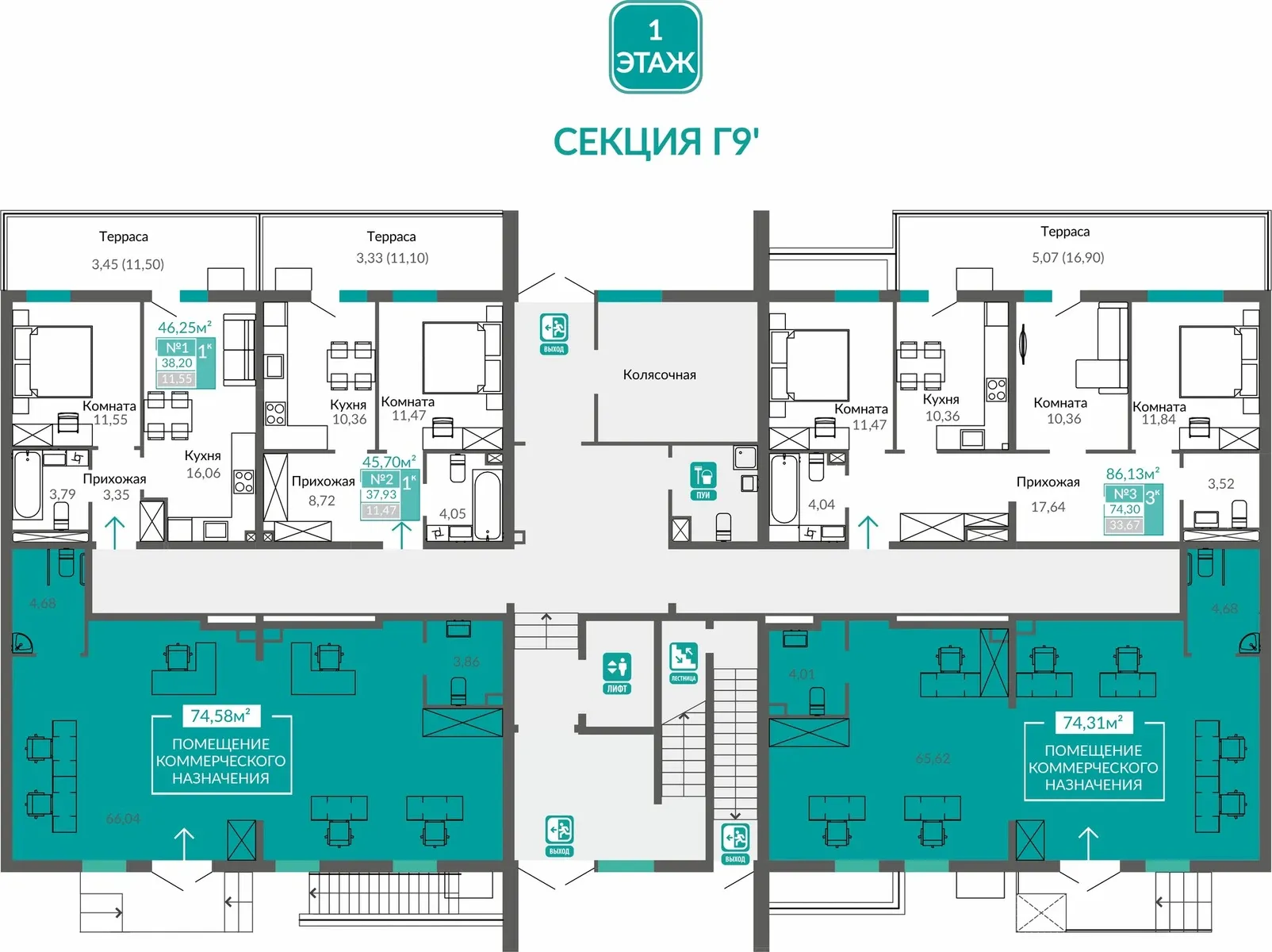 - Входные группы на уровне земли и сквозные парадные — безбарьерная среда для всех.