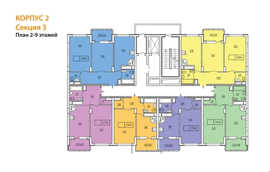 - Автономное отопление: двухконтурные газовые котлы в каждой квартире.