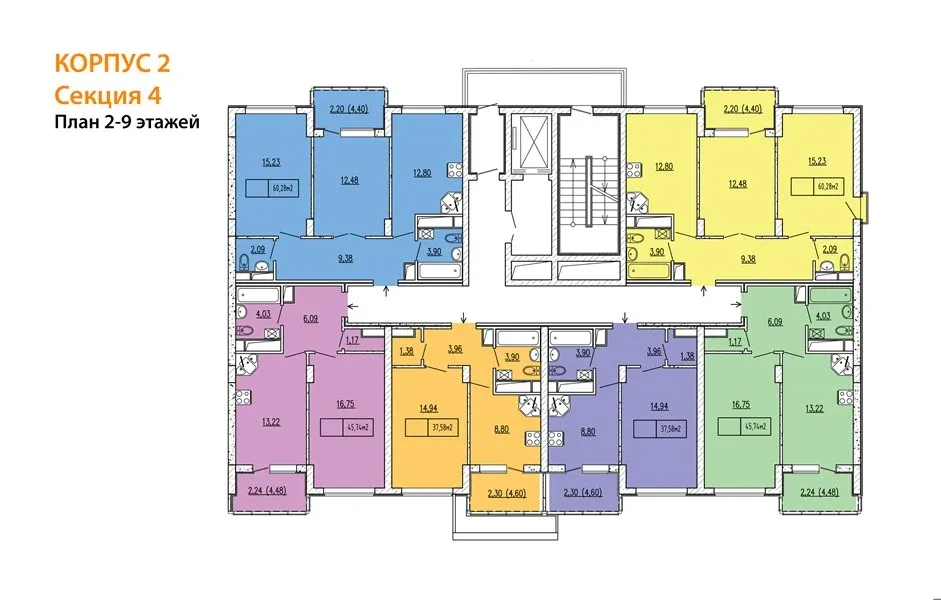 - Автономное отопление: двухконтурные газовые котлы в каждой квартире.