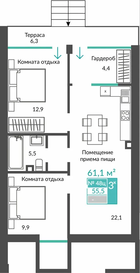 - Просторные террасы и балконы — приватные зоны для утреннего кофе и вечерних посиделок.