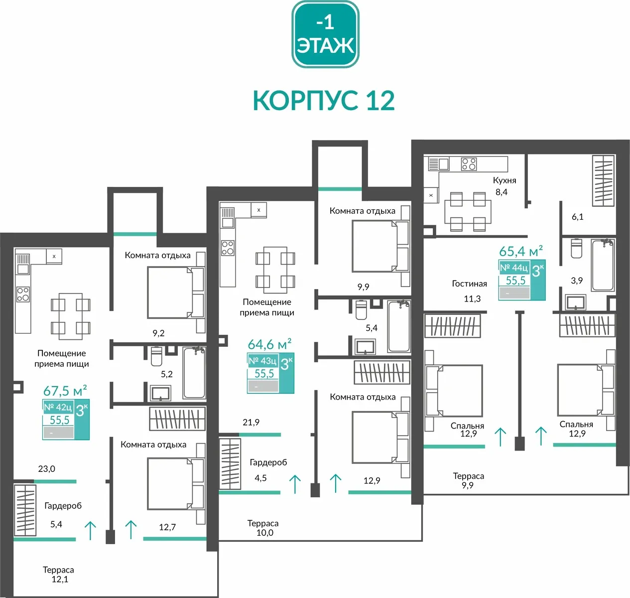- Просторные террасы и балконы — приватные зоны для утреннего кофе и вечерних посиделок.