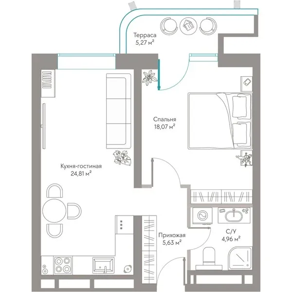 Апартамент: 1 к 58,74 кв.м., 5 этаж в комплексе Курортный комплекс Сансара, 1 очередь, корп.1, сдача: 3кв. , этажей: 12, адрес Саки г., Морская ул., , Застройщик: СЗ Аспекта.