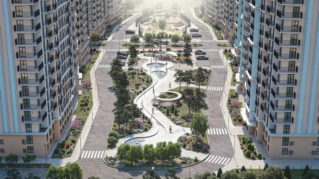 - Простор для вас и ваших детей: Прогулочные зоны, современные детские площадки, где звучит счастливый смех, и спортивный комплекс с тренажерами под открытым небом — здесь каждый найдет занятие по душе.