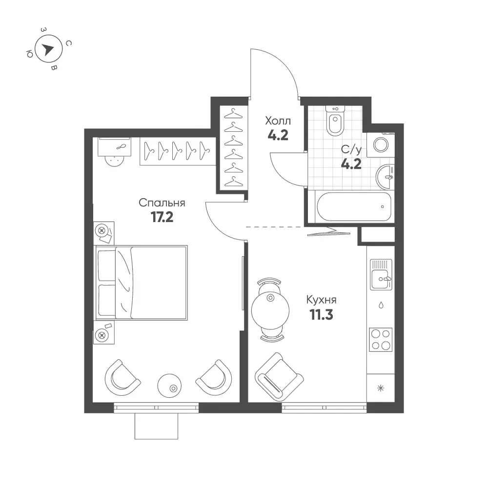 - Студии - 28–35 м² — Идеал для молодых профессионалов и инвесторов
