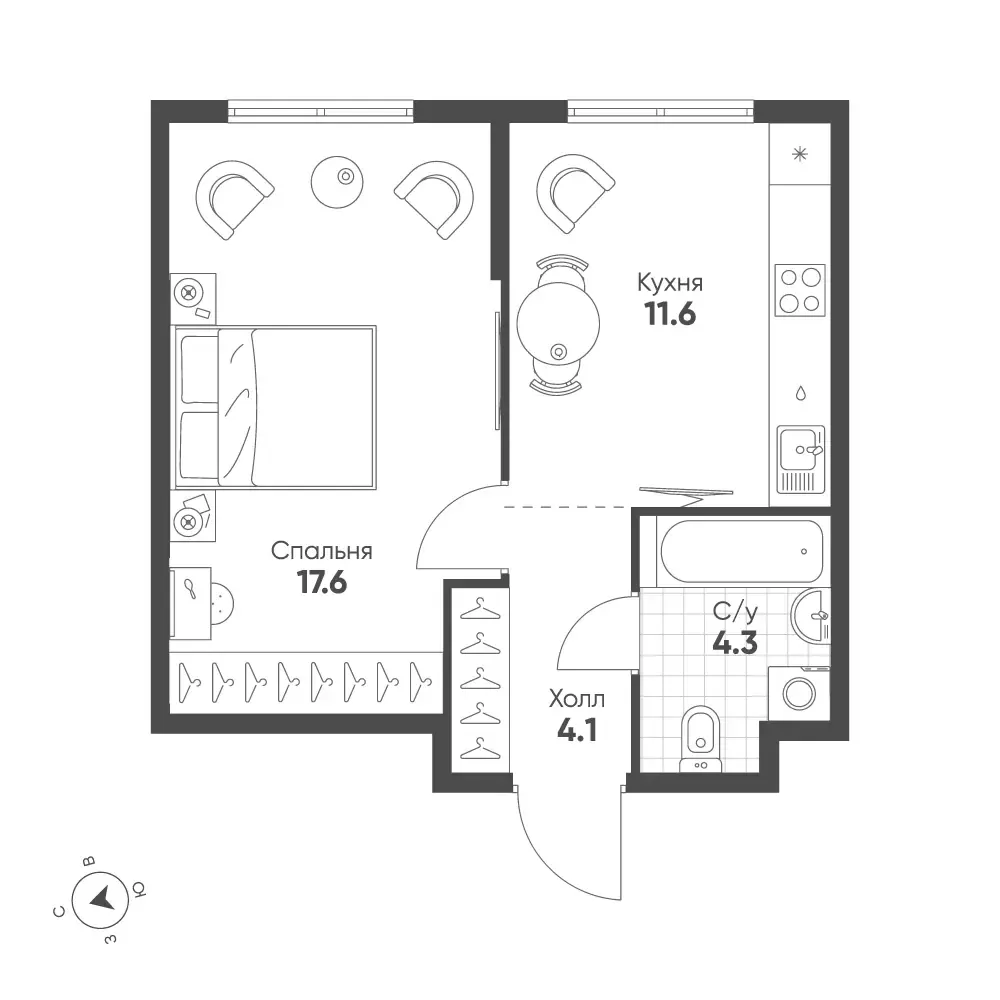 - 1-комнатные - 36–45 м² — Комфорт для молодых семей