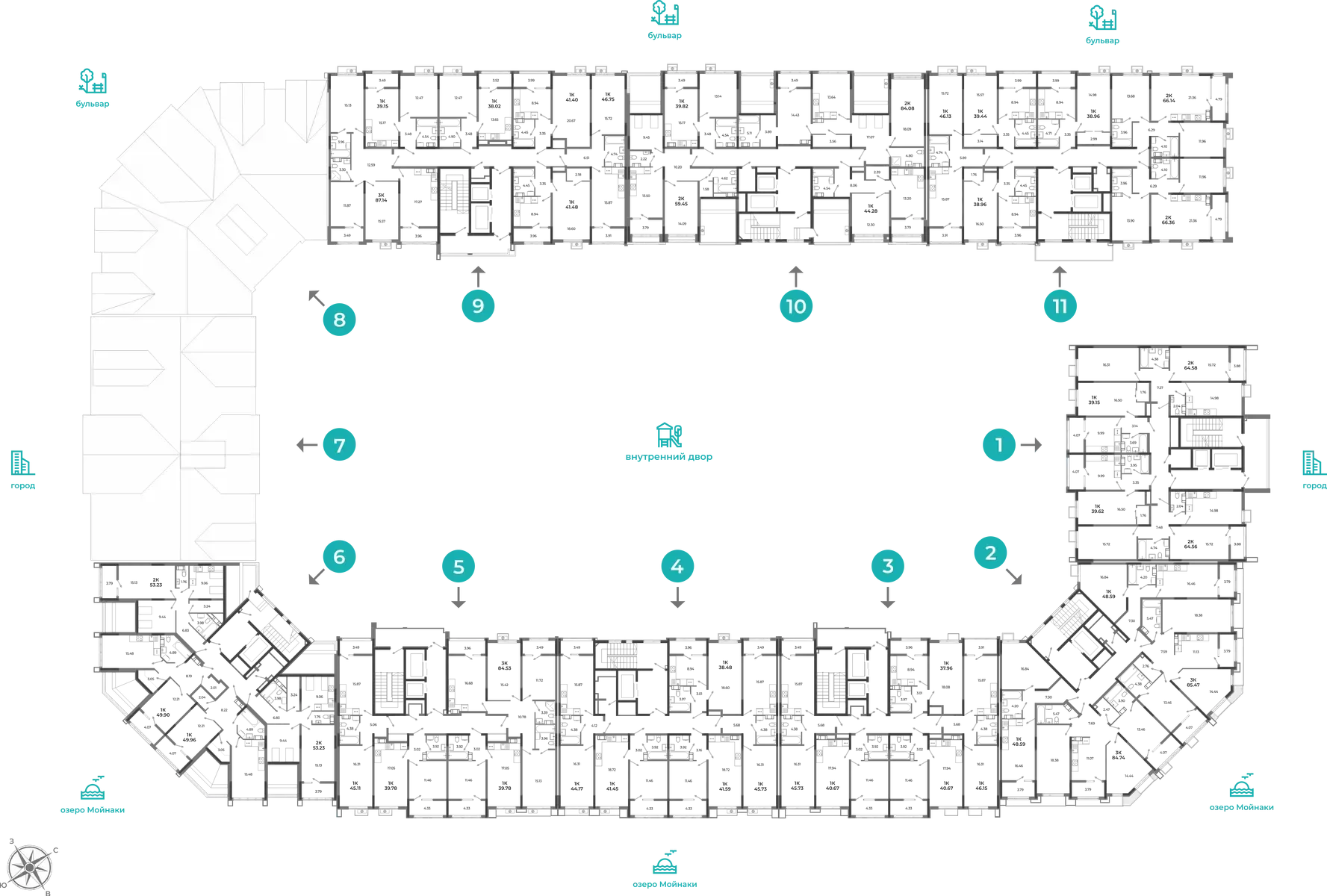 - Квартиры от функциональных студий (от 25 м²) до просторных трёхкомнатных (до 102 м²). Здесь можно купить квартиру как для одного, так и для большой семьи.