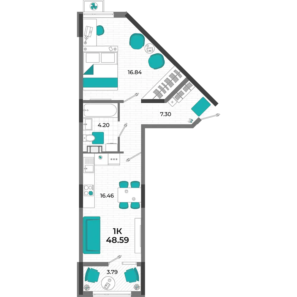 - Квартиры от функциональных студий (от 25 м²) до просторных трёхкомнатных (до 102 м²). Здесь можно купить квартиру как для одного, так и для большой семьи.