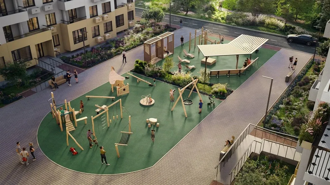 Застройщик вернул двор людям. Ваши дети играют в безопасности на современных площадках, вы отдыхаете в благоустроенных зонах среди зелени, а велосипеды ждут своих хозяев на специальной парковке.