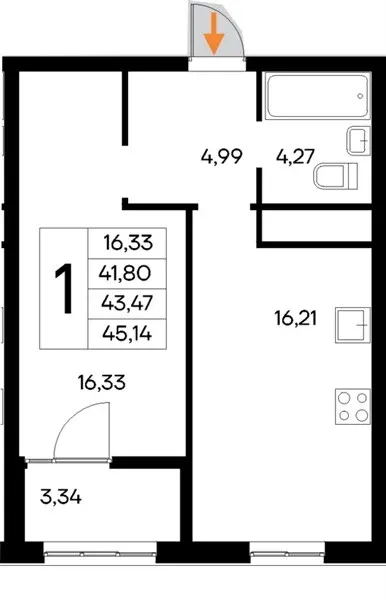 Квартира: 1 к 45,14 кв.м., 5 этаж в комплексе Новый Судак, 1 очередь, корп.2, сдача: 4кв. , этажей: 9, адрес Судак г., Судак р-н, , Застройщик: Интерстрой.