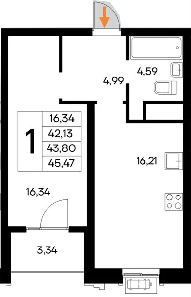 Квартира: 1 к 45,47 кв.м., 2 этаж в комплексе Новый Судак, 1 очередь, корп.2, сдача: 4кв. , этажей: 9, адрес Судак г., Судак р-н, , Застройщик: Интерстрой.
