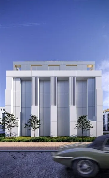 Три элегантных пятиэтажных дома с колоннами, повторяющие пропорции античных храмов. Строгие линии, симметричные формы и благородная цветовая гамма создают ощущение вечности. Это не просто жилье — это архитектурная ода гармонии, где неоклассика встречается с современными технологиями.