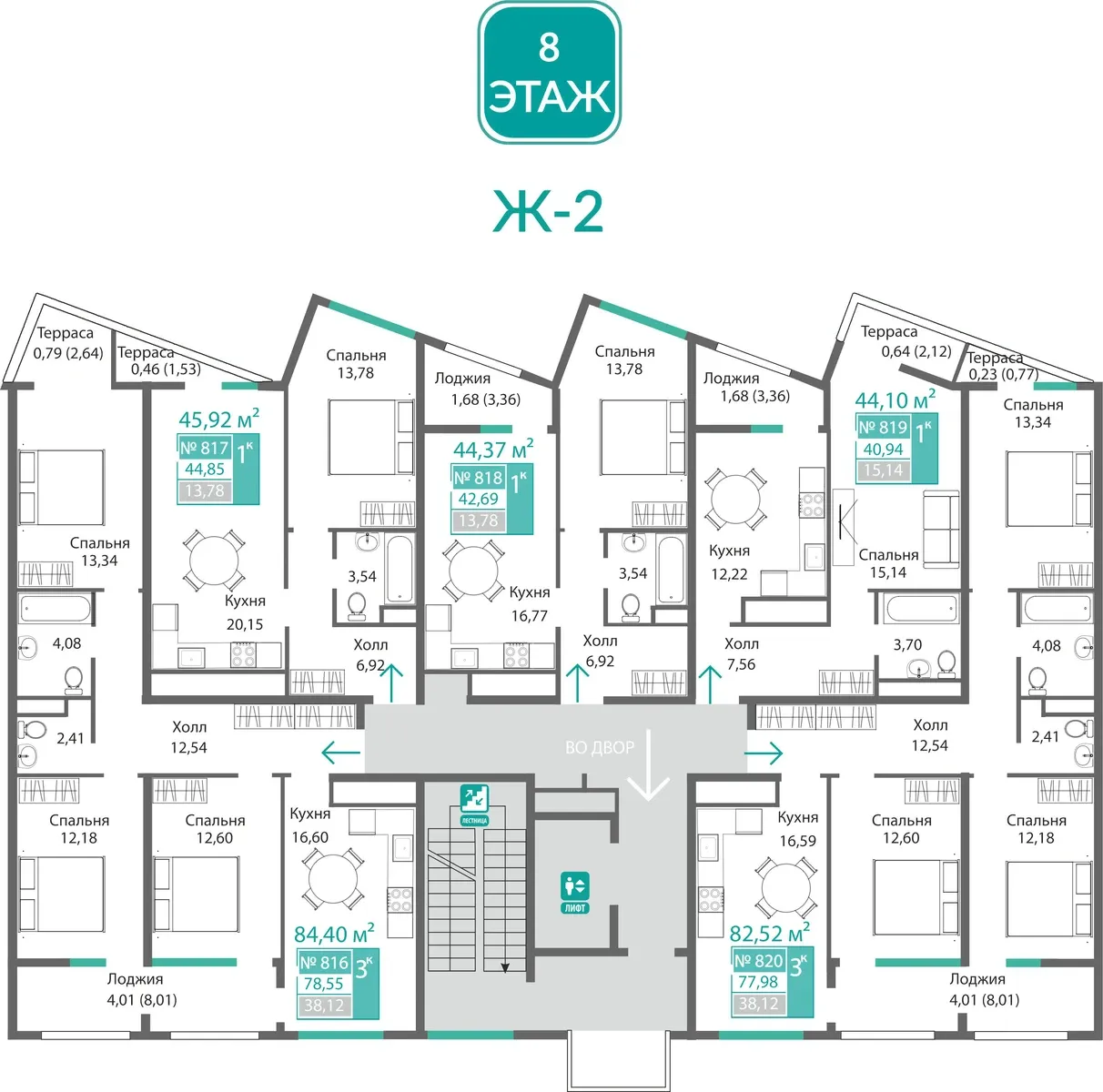 - Квартиры с собственными двориками на первых этажах — ваше личное патио, ориентированное во внутренний двор. Уникальное предложение для тех, кто мечтает о своем уголке зелени, не уезжая из города.