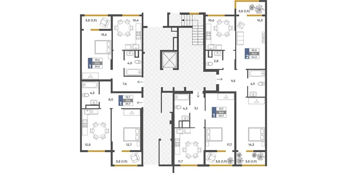 - 4 дома переменной этажности (4-5 этажей) — камерность и приватность