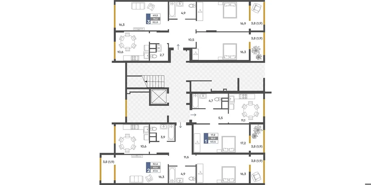 - 4 дома переменной этажности (4-5 этажей) — камерность и приватность
