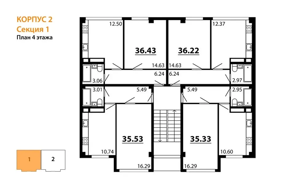- 1-комнатные квартиры 36-37 м² — востребованный формат для пар, молодых специалистов и студентов