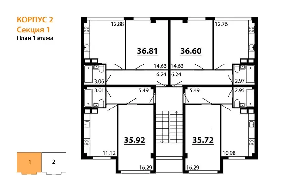 - 1-комнатные квартиры 36-37 м² — востребованный формат для пар, молодых специалистов и студентов
