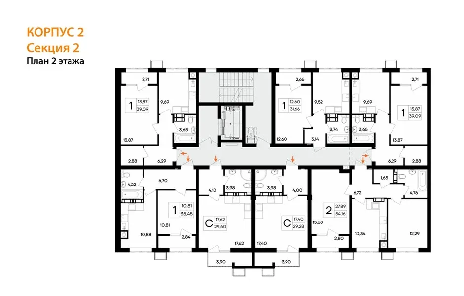- Двухкомнатные квартиры — простор для малой семьи.