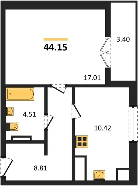 Квартира 1-комн. 44.15 кв. м 8/8 эт.