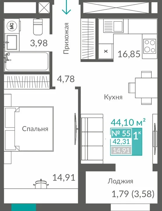 - Квартиры с евроформатом. Кухни-гостиные — центр притяжения семьи и друзей.