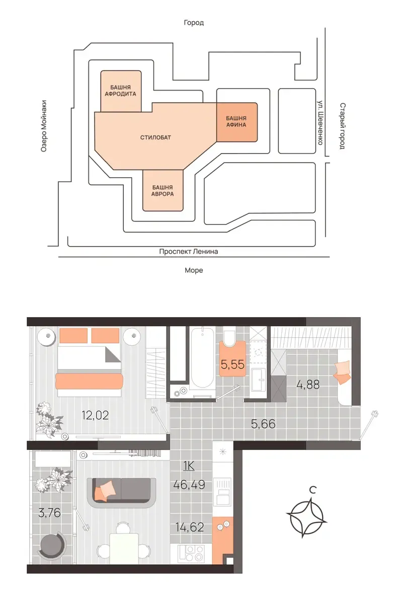 Главное богатство этого проекта — его расположение. Комплекс находится в пешей доступности от лазурного побережья, что делает его одним из самых привлекательных предложений среди ЖК в Евпатории: