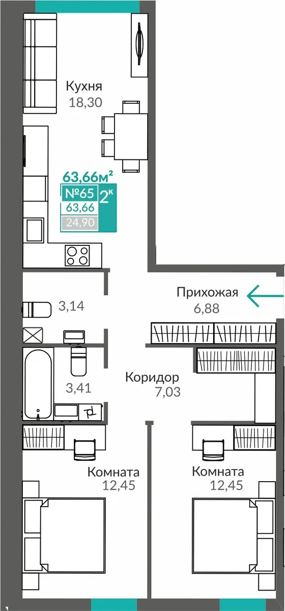Застройщик создал квартиры, в которых хочется проводить время, принимать гостей и радоваться каждому дню. Ни одного лишнего метра — только эргономика и функциональность.