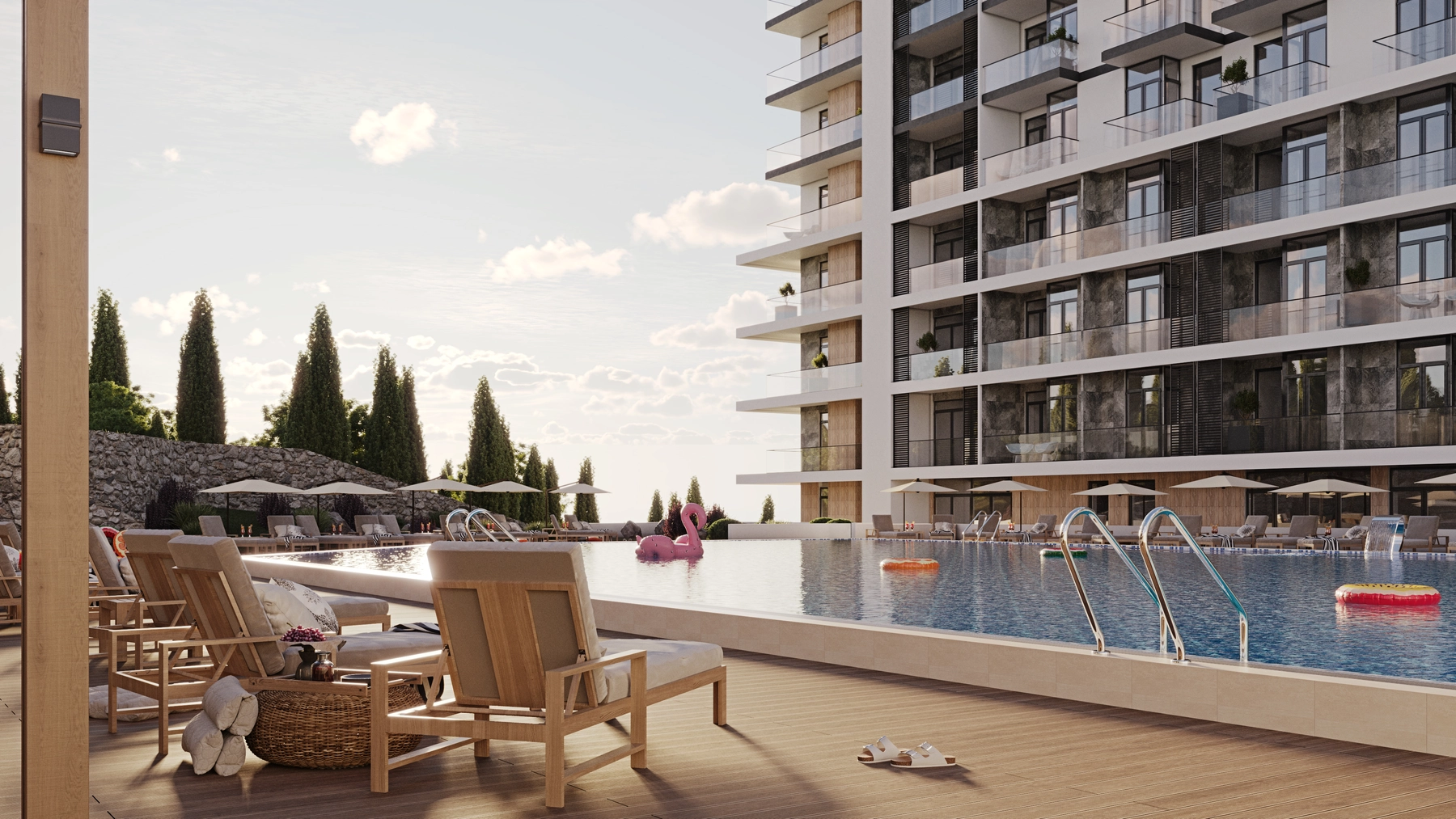15 этажей, панорамное остекление, дизайнерский ремонт «под ключ». Круглогодичный бассейн, собственный пляж, pet-friendly. Управление — профессиональный отельный оператор.