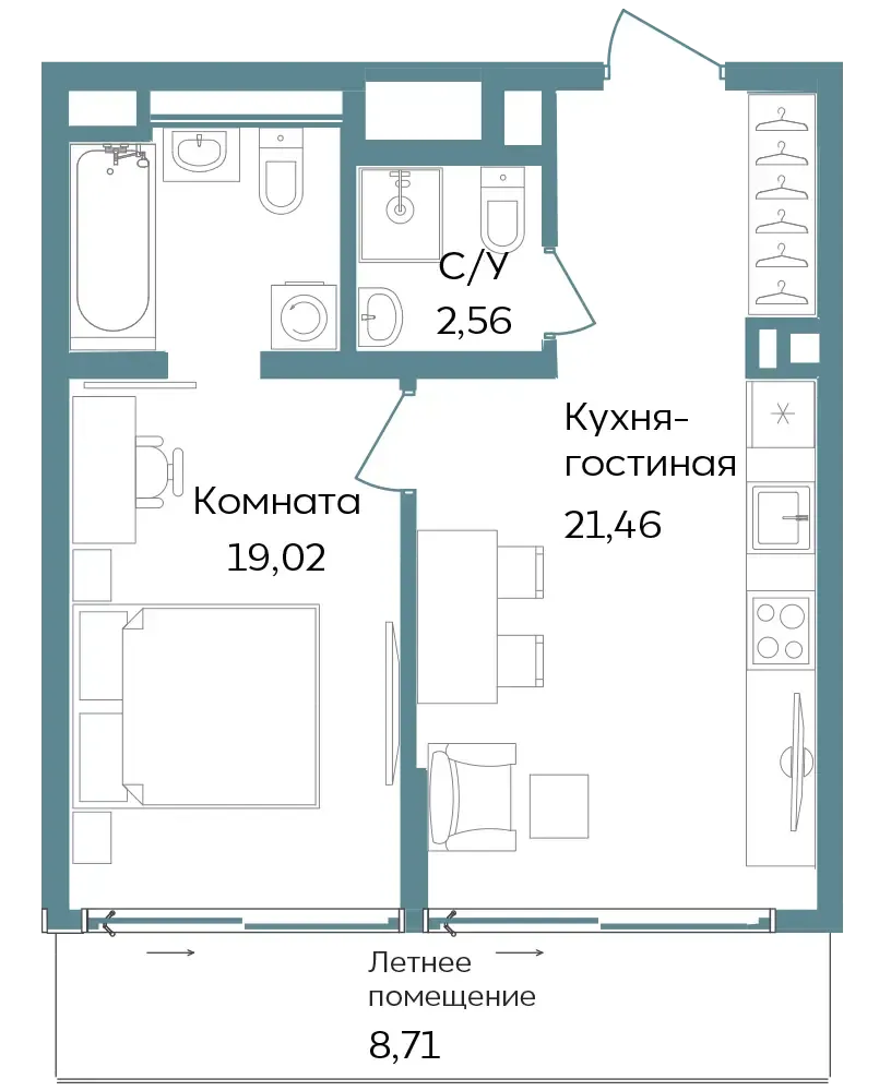 Студии и апартаменты с 1–3 комнатами в формате европланировок.